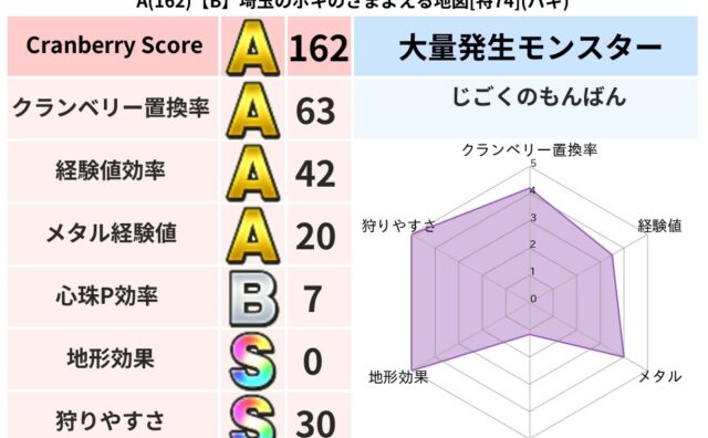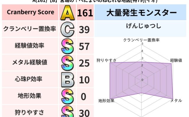クランベリーボット判定結果の詳細クランベリースコア162クランベリー置換率63%大量発生モンスターじごくのもんばん超耐性バギ(0%)こころ道 完全一致モンスターブラウニー守り人(共通Lv1)どれいへいしドラゴン(人道Lv5)プリズニャンニン...