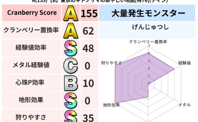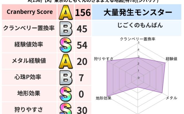 クランベリーボット判定結果の詳細クランベリースコア170クランベリー置換率50%大量発生モンスターガニメデス超耐性デイン(0%)こころ道 完全一致モンスターナイトキャット守り人(まもり道Lv30)くさった死体ゴッドハンド(守護道Lv5)大魔...