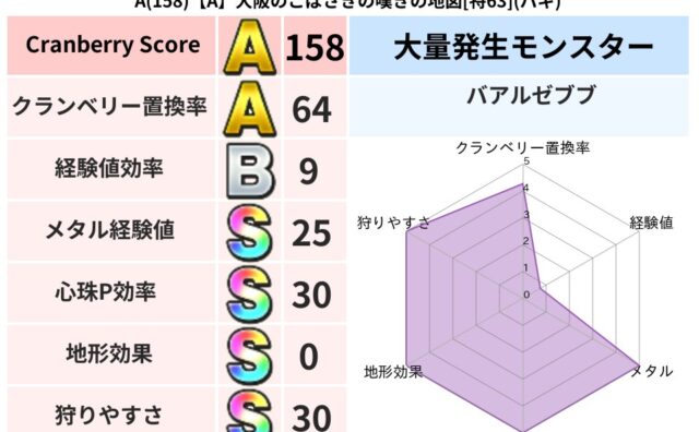 クランベリーボット判定結果の詳細クランベリースコア165クランベリー置換率43%大量発生モンスターリリパット超耐性バギ(0%)超耐性・弱耐性なしドルマジバリアこころ道 完全一致モンスターヘルボックル魔剣士(魔道Lv30)しりょうのきし大神官...