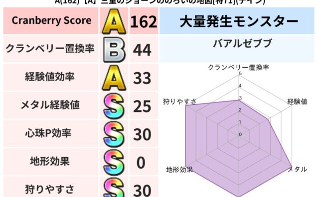 クランベリーボット判定結果の詳細クランベリースコア169クランベリー置換率63%大量発生モンスターヒョウモンダーク超耐性デイン(0%)こころ道 完全一致モンスターかっちゅうアリ魔人(共通Lv1)パペットマン天地雷鳴士(天道Lv5)アイアンク...