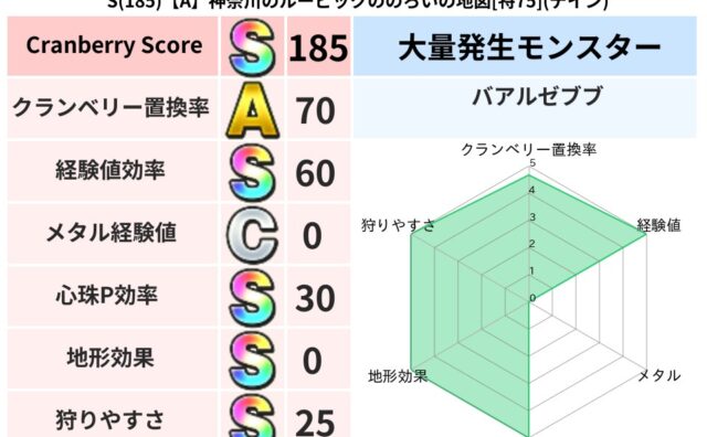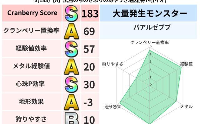 スコアS S(183)【A】広島のちのさふりのあやうき地図[特74](イオ) クランベリーボット判定結果の詳細クランベリースコア183クランベリー置換率69%大量発生モンスターバアルゼブブ超耐性イオ(2%)超耐性・弱耐性なしバギデインこころ道 完全一致モンスターベロニャーゴ大魔道士(理力道Lv5)てつのさそりゴッドハ... 2025/08/30 16:17 スコアS地図判定結果