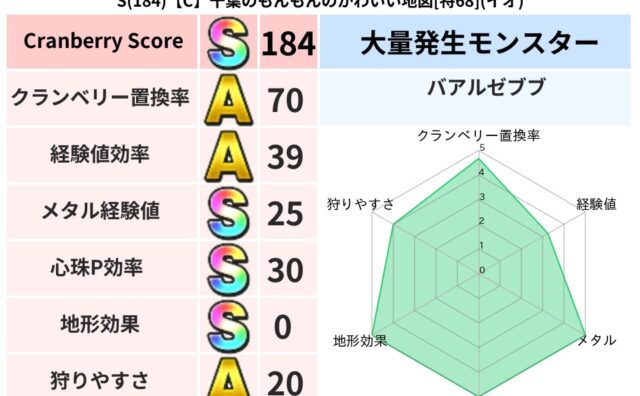 スコアS S(184)【C】千葉のもんもんのかわいい地図[特68](イオ) クランベリーボット判定結果の詳細クランベリースコア184クランベリー置換率70%大量発生モンスターバアルゼブブ超耐性イオ(0%)こころ道 完全一致モンスターばくだん岩大神官(舞道Lv5)てっこうまじん大神官(舞道Lv10)ダースドラゴン天地... 2025/04/04 19:39 スコアS地図判定結果
