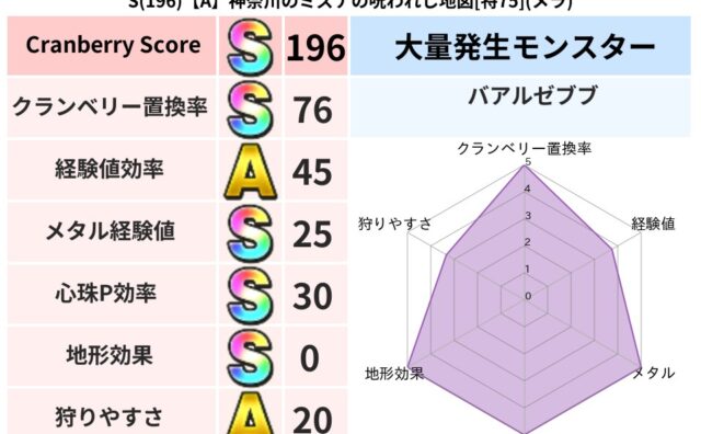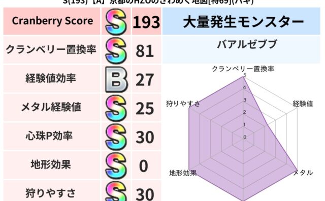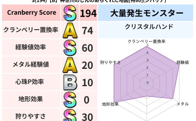 クランベリーボット判定結果の詳細クランベリースコア194クランベリー置換率74%大量発生モンスタークリスタルハンド超耐性ジバリア(0%)こころ道 完全一致モンスターキースドラゴン大魔道士(理力道Lv5)しましまキャットニンジャ(共通Lv1)...