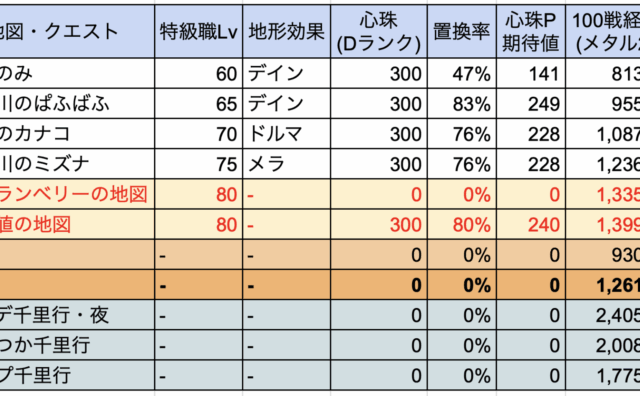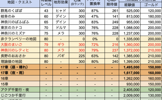 地図・クエストの経験値効率 宝の地図の経験値効率(2025/12/12)