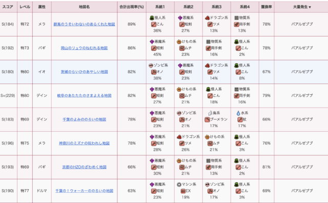 地図データ・統計 じごくのもんばん心ドロップ率調査 最近、話題になっているじごくのもんばん大量発生の「愛知のDayueのねむれる地図」スライアスロンの種目「フィールドバトル」で有利なのでは?という噂が本当なのか、調査してみました!Sランクのドロップ率が高いのか?以前から「じごくのもんばんはS... 2025/11/29 12:00 地図データ・統計