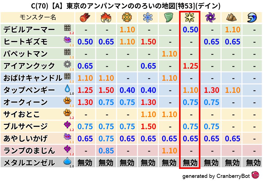 • 最高系統出現率:一番出現率の高いモンスターの系統、こころドロップ率アップの参考に!