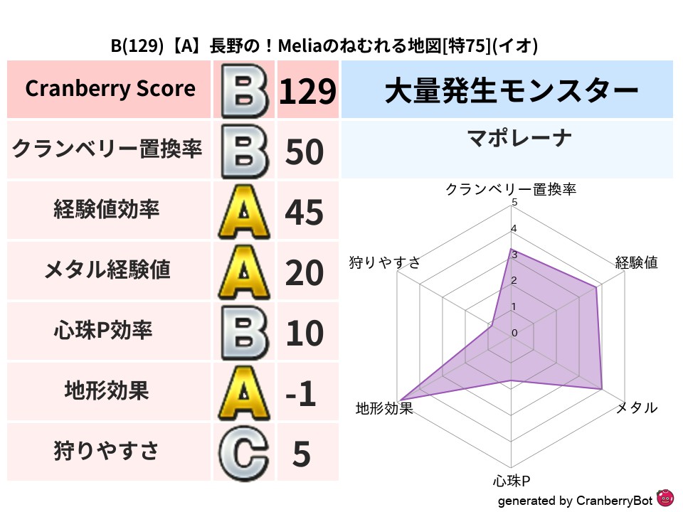 • クランベリースコア:これまで判定した地図での順位、上位100位はかなりレア✨