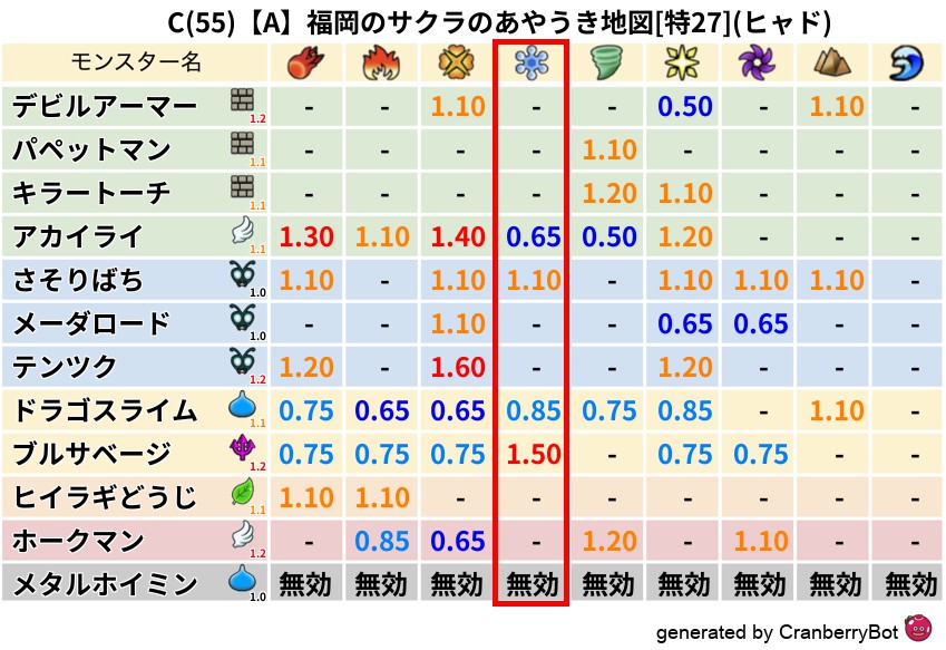 ヒャド(46%) - 超耐性・弱耐性なし