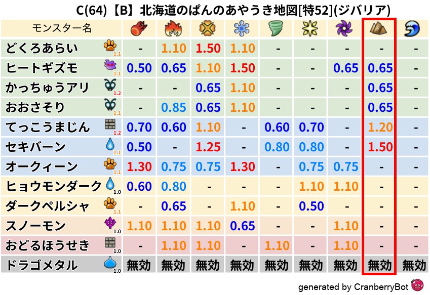 • クランベリー置換率:大量発生モンスター別の順位、最高置換率の地図は人気が高い