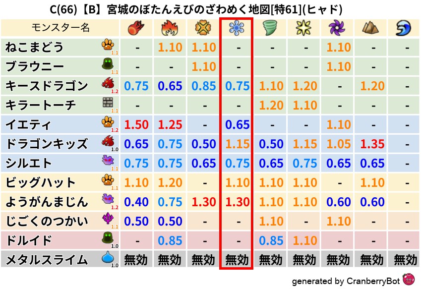 • クランベリー置換率:大量発生モンスター別の順位、最高置換率の地図は人気が高い
