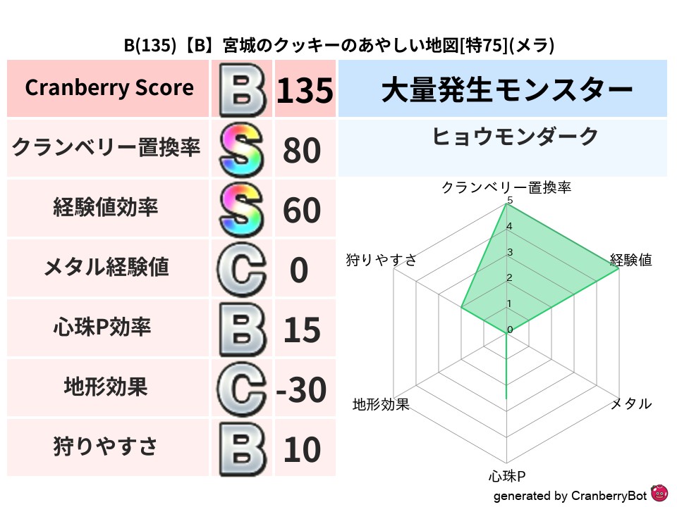 - クランベリースコア:135