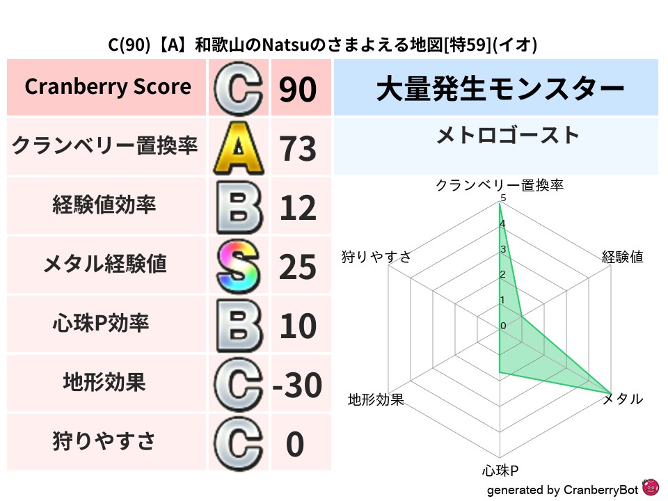 • クランベリースコア:これまで判定した地図での順位、上位100位はかなりレア✨