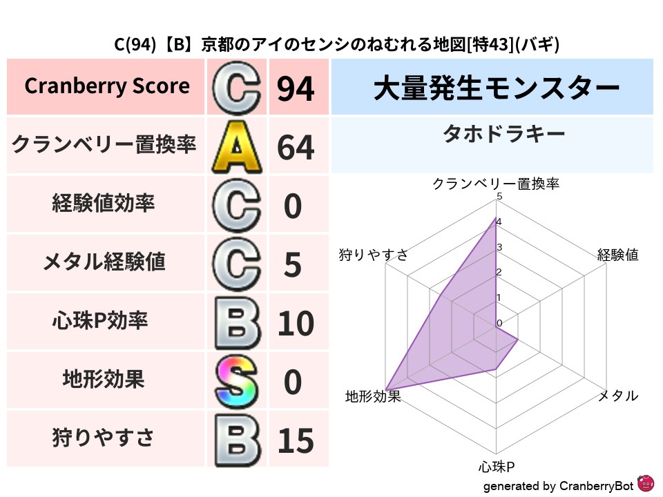 | 判定 | スコア | 地図名 | レベル | 属性 | Discord | 114 | 【B】千葉のこのさまよえる地図 | 特54 | デイン | link | 110 | 【B】大阪のオサムのあらくれた地図 | 特60 | デイン | link | 97 | 【B】京都のアイのセンシのねむれる地図 | 特43 | バギ | link | 96 | 【A】愛知のくにのあらくれた地図 | 特60 | デイン | link | 94 | 【A】埼玉のあきザウルスのざわめく地図 | 特59 | ジバリア | link |