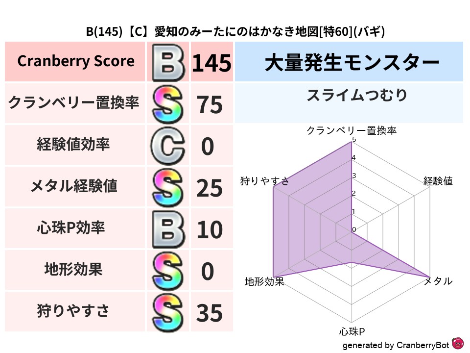 | 判定 | スコア | 地図名 | レベル | 属性 | Discord | 155 | 【C】愛知のみーたにのはかなき地図 | 特60 | バギ | link | 147 | 【C】東京のまえのめりのゆらめく地図 | 特60 | デイン | link | 128 | 【A】福岡のこてぼののろいの地図 | 特56 | ドルマ | link | 127 | 【A】埼玉のオルカブのさまよえる地図 | 特59 | バギ | link | 127 | 【A】福岡のちゃこのあらくれた地図 | 特60 | イオ | link |