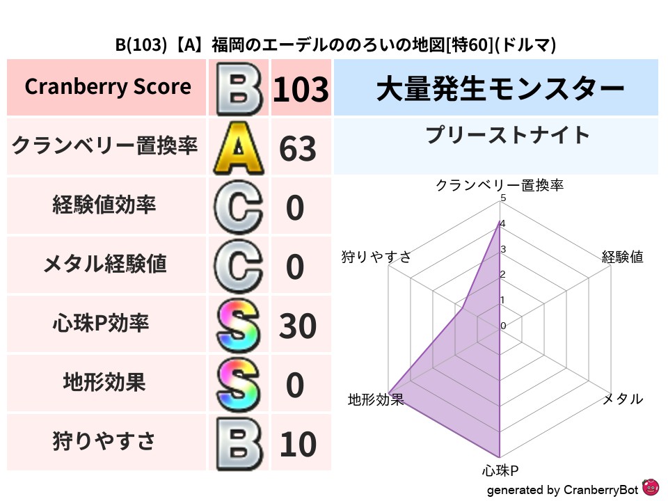 | 判定 | スコア | 地図名 | レベル | 属性 | Discord | 140 | 【A】三重のセリオスのあやうき地図 | 特65 | ギラ | link | 135 | 【A】長野のシャドウののろいの地図 | 特60 | ドルマ | link | 124 | 【A】宮城のルミコのあやうき地図 | 特52 | ギラ | link | 118 | 【B】静岡のシュウののろいの地図 | 特65 | ジバリア | link | 116 | 【A】富山のカノアののろいの地図 | 特56 | バギ | link |