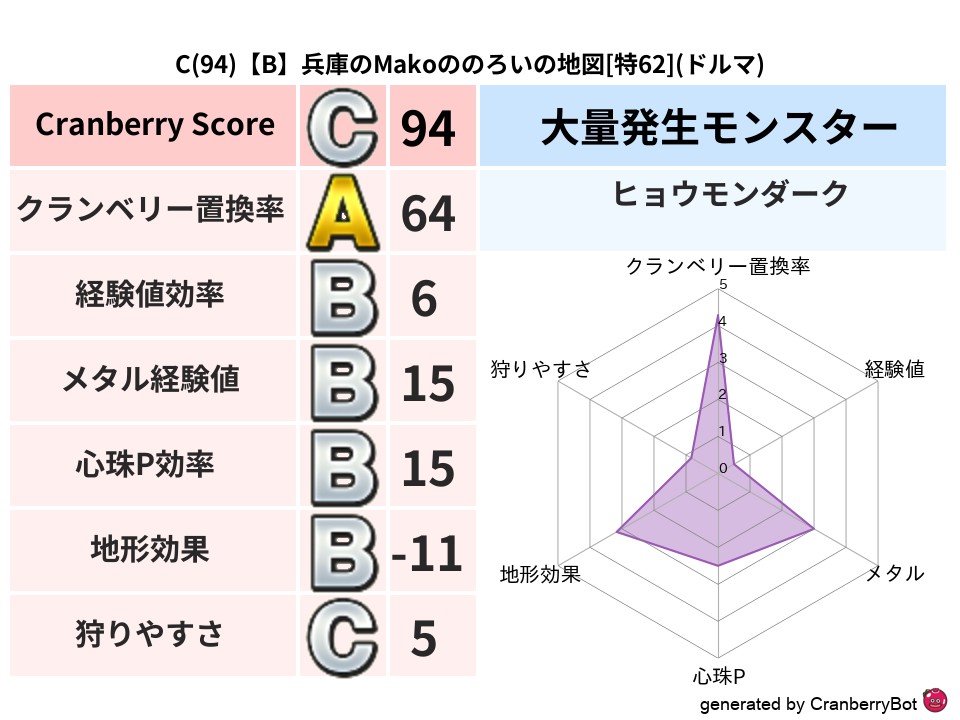 | 判定 | スコア | 地図名 | レベル | 属性 | Discord | 155 | 【B】東京のかげちょのあらくれた地図 | 特65 | バギ | link | 132 | 【B】神奈川のしょぼんのざわめく地図 | 特59 | バギ | link | 124 | 【B】兵庫のMakoののろいの地図 | 特62 | ドルマ | link | 122 | 【A】東京のたーまのさまよえる地図 | 特62 | ジバリア | link | 113 | 【A】山口のQuoののろいの地図 | 特64 | デイン | link |