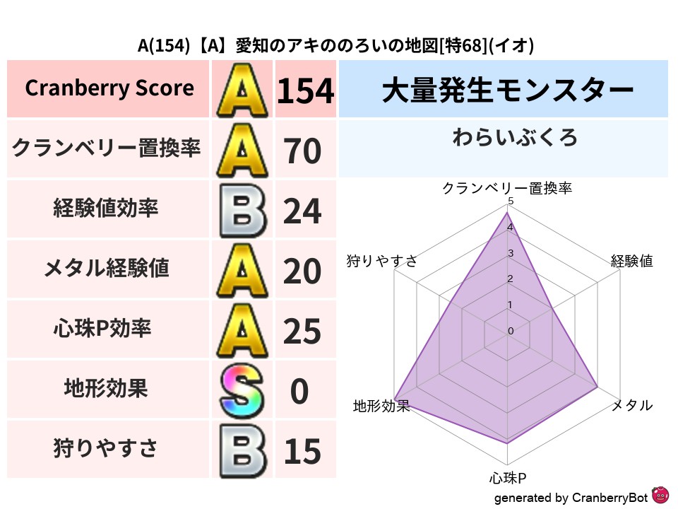 | 判定 | スコア | 地図名 | レベル | 属性 | Discord | 184 | 【A】愛知のアキののろいの地図 | 特68 | イオ | link | 157 | 【C】兵庫のえみのゆらめく地図 | 特58 | ヒャド | link | 138 | 【A】大阪のギアラのあやうき地図 | 特69 | デイン | link | 134 | 【C】東京のタニーニのねむれる地図 | 特63 | ヒャド | link | 130 | 【C】東京のGalaxyのざわめく地図 | 特63 | ヒャド | link |