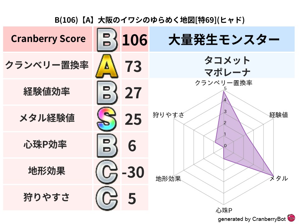 | 判定 | スコア | 地図名 | レベル | 属性 | Discord | 144 | 【A】長野のリオののろいの地図 | 特60 | メラ | link | 136 | 【A】大阪のイワシのゆらめく地図 | 特69 | ヒャド | link | 135 | 【C】和歌山のレイのゆらめく地図 | 特65 | イオ | link | 134 | 【C】千葉のパーずいーのゆらめく地図 | 特70 | ヒャド | link | 131 | 【B】東京のヤップのねむれる地図 | 特70 | ドルマ | link |