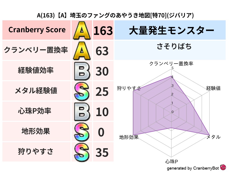 | 判定 | スコア | 地図名 | レベル | 属性 | Discord | 183 | 【A】埼玉のファングのあやうき地図 | 特70 | ジバリア | link | 150 | 【B】高知のいちのあやうき地図 | 特69 | ジバリア | link | 135 | 【S】神奈川のジョーの呪われし地図 | 特70 | メラ | link | 128 | 【A】福岡のレイのあらくれた地図 | 特65 | ヒャド | link | 121 | 【A】神奈川のベジータのさまよえる地図 | 特70 | ジバリア | link |