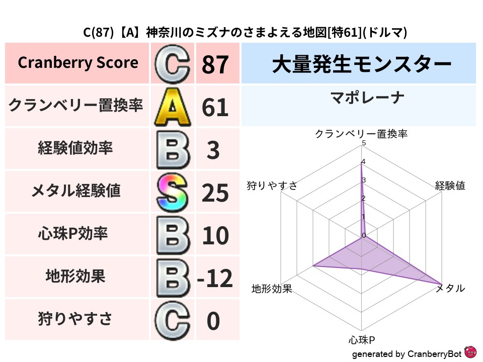 | 20 | 【C】山口のルカのゆらめく地図 | 特61 | ドルマ | link | 17 | 【B】広島のひでっちのあやうき地図 | 特46 | イオ | link | 16 | 【A】千葉のAkaRinのざわめく地図 | 上43 | ドルマ | link | 15 | 【A】富山のしぼうかんののろいの地図 | 特44 | イオ | link | 13 | 【B】広島のスマのあやうき地図 | 特62 | メラ | link | 13 | 【A】静岡のハナコのさまよえる地図 | 特62 | ギラ | link | 10 | 【A】兵庫のルカのあらくれた地図 | 特59 | ギラ | link | 7 | 【A】兵庫のルカのさまよえる地図 | 特52 | ジバリア | link | 2 | 【B】広島のひーなのねむれる地図 | 特59 | ドルマ | link | -1 | 【B】京都のトロのあらくれた地図 | 上31 | バギ | link | -2 | 【A】静岡のカダののろいの地図 | 特49 | ヒャド | link | -9 | 【C】愛知のkomuのちいさき地図 | 特51 | デイン | link | -15 | 【C】香川のともひろのあやうき地図 | 上43 | メラ | link |