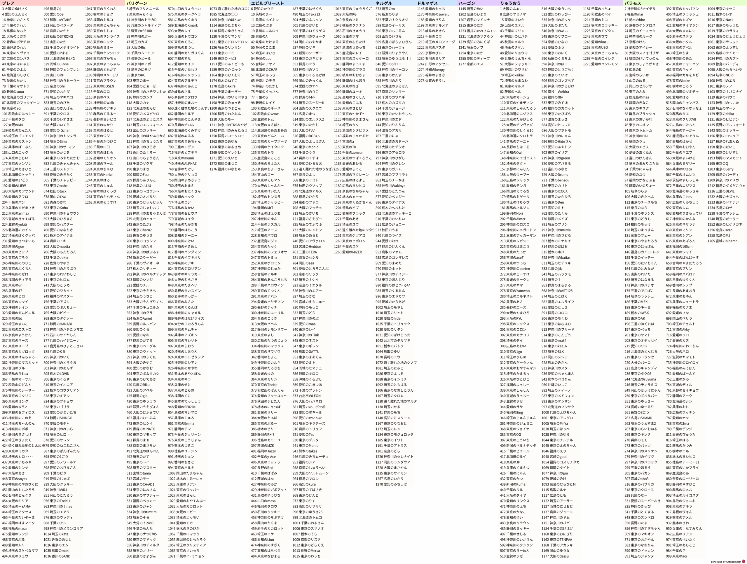 | 81 | 【B】愛知のらららののろいの地図 | 特80 | ドルマ | 81 | 【B】愛知のロナウドのゆらめく地図 | 特80 | バギ | 78 | 【B】富山のフランケルのゆらめく地図 | 特80 | バギ | 77 | 【C】大阪のら〜のあやしい地図 | 特64 | メラ | 77 | 【A】愛媛のゆいぴーのあやうき地図 | 特77 | ヒャド | 76 | 【B】富山のBLACKのざわめく地図 | 特76 | イオ | 75 | 【A】滋賀のヤマモトのさまよえる地図 | 特74 | ジバリア | 75 | 【A】東京のよしだまぁやのあやうき地図 | 特75 | イオ | 74 | 【A】埼玉のほいっとのあらくれた地図 | 特80 | ドルマ | 73 | 【A】岡山のあおのあやうき地図 | 特80 | イオ | 72 | 【B】静岡のハナコののろいの地図 | 特79 | ヒャド | 72 | 【A】福岡のアイリンの嘆きの地図 | 特71 | イオ | 72 | 【A】静岡のベスのあやうき地図 | 特80 | ドルマ | 72 | 【A】埼玉のシフォンのあやうき地図 | 特79 | ジバリア | 72 | 【A】大阪のつなぐ4ぱんのあやうき地図 | 特80 | デイン | 72 | 【A】福井のこいコンのあらくれた地図 | 特70 | ドルマ | 70 | 【C】広島のおでんのあやうき地図 | 特80 | メラ | 70 | 【B】東京のげどうのあやうき地図 | 特72 | ギラ | 69 | 【B】栃木のおいたんのあらくれた地図 | 特56 | ドルマ | 68 | 【C】東京のEgressのざわめく地図 | 特80 | ドルマ | 68 | 【C】福島のガルベスのざわめく地図 | 特79 | ジバリア | 68 | 【A】兵庫のもんのあらくれた地図 | 特62 | デイン | 68 | 【B】神奈川のエンドゥーのさまよえる地図 | 特69 | ジバリア | 67 | 【A】東京のあやたかののろいの地図 | 特80 | ドルマ | 67 | 【ご当地】愛知のれっずちゃんのあらくれた地図 | 特77 | ジバリア | 66 | 【B】埼玉の!ゆーののろいの地図 | 特80 | イオ | 66 | 【A】栃木のおいたんのあやうき地図 | 特80 | デイン | 66 | 【A】愛知のうりのぶの放たれし地図 | 特76 | ヒャド | 66 | 【A】愛知のピクルスのざわめく地図 | 特51 | デイン | 65 | 【C】遠く離れた地のシドのざわめく地図 | 特78 | メラ | 65 | 【A】広島のそうまののろいの地図 | 特76 | ギラ | 64 | 【B】愛知のさかいいずみのざわめく地図 | 特76 | デイン | 63 | 【A】北海道のバティののろいの地図 | 特77 | バギ | 63 | 【C】佐賀のトルテのかわいい地図 | 特80 | ジバリア | 63 | 【B】東京のきゅーぽんのざわめく地図 | 特79 | ドルマ | 62 | 【A】北海道のセロラーのあやうき地図 | 特79 | ギラ | 62 | 【A】愛知のACTYのさまよえる地図 | 特80 | バギ | 62 | 【C】富山のリアムのざわめく地図 | 特79 | イオ | 62 | 【B】岡山のもじじののろいの地図 | 特80 | ドルマ | 62 | 【A】群馬のちみちゃんがののろいの地図 | 特79 | デイン | 61 | 【C】東京の!とまらないのちいさき地図 | 特78 | ドルマ | 61 | 【C】石川のロインのちいさき地図 | 特80 | ギラ | 61 | 【A】宮崎のパパモンのあやうき地図 | 特80 | ジバリア | 60 | 【A】東京のねみるむののろいの地図 | 特30 | バギ | 60 | 【C】鹿児島のアーサーのねむれる地図 | 特76 | メラ | 60 | 【A】静岡のはるYukiのさまよえる地図 | 特80 | イオ | 60 | 【A】神奈川のマサマサのあらくれた地図 | 特80 | バギ | 60 | 【B】北海道のまんじいじじののろいの地図 | 特78 | バギ | 59 | 【C】福岡のJOEのゆらめく地図 | 特80 | イオ | 59 | 【A】大分のたけろーのさまよえる地図 | 特76 | メラ |