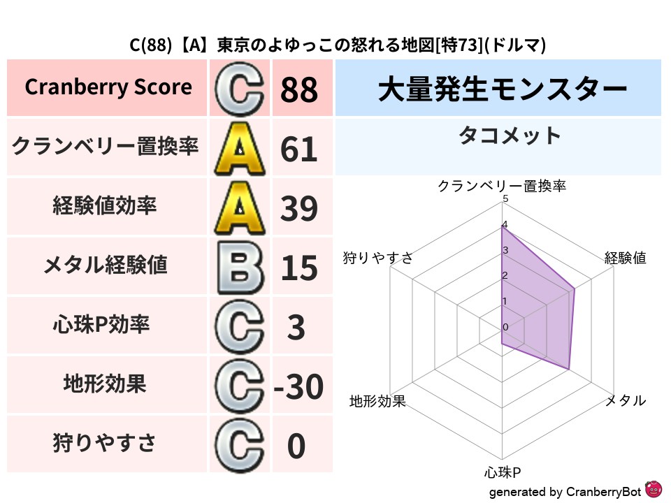 | 判定 | スコア | 地図名 | レベル | 属性 | 197 | 【C】東京の!ちゅぴおのささやかな地図 | 特77 | デイン | 149 | 【B】栃木のエルツのねむれる地図 | 特80 | ギラ | 147 | 【A】東京のYukiのざわめく地図 | 特79 | デイン | 133 | 【A】東京のロットのさまよえる地図 | 特77 | メラ | 131 | 【A】滋賀のにょちきのあやうき地図 | 特80 | バギ |
