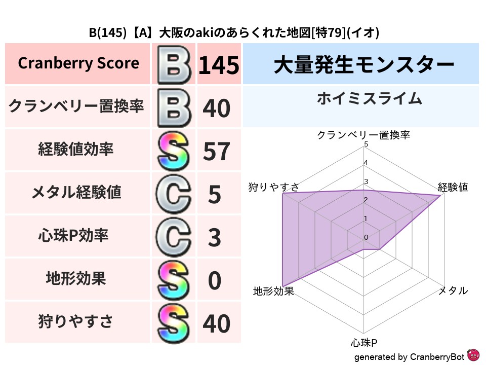 | 判定 | スコア | 地図名 | レベル | 属性 | 164 | 【B】静岡の!べるきんのあやうき地図 | 特79 | ジバリア | 157 | 【B】千葉のくろべエのさまよえる地図 | 特71 | バギ | 156 | 【B】奈良のえびふらいのさまよえる地図 | 特79 | バギ | 155 | 【B】三重のハンプトンのゆらめく地図 | 特79 | ジバリア | 146 | 【A】東京のボッスンのさまよえる地図 | 特80 | メラ |