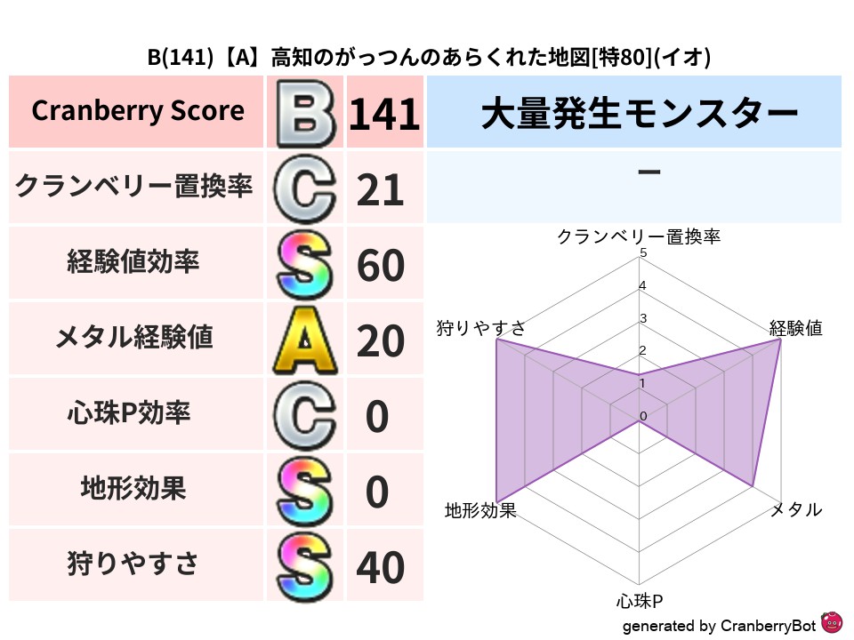 | 判定 | スコア | 地図名 | レベル | 属性 | 194 | 【A】埼玉のかぶのさまよえる地図 | 特80 | ドルマ | 146 | 【B】愛知のノアのゆらめく地図 | 特80 | デイン | 145 | 【A】兵庫の!がんこのあらくれた地図 | 特80 | ドルマ | 135 | 【A】兵庫のピナさんのあやうき地図 | 特76 | ドルマ | 134 | 【A】愛知のジュピターののろいの地図 | 特79 | バギ |