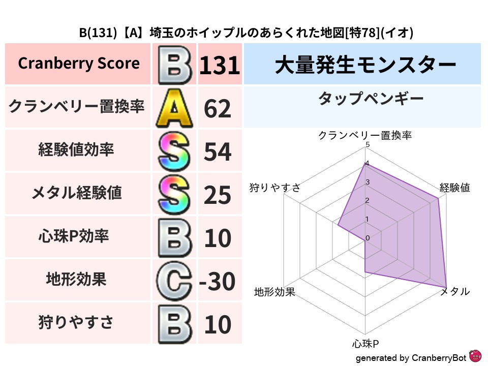 | 判定 | スコア | 地図名 | レベル | 属性 | 162 | 【B】東京のウブノブのざわめく地図 | 特80 | デイン | 150 | 【B】長崎のくろうのねむれる地図 | 特80 | ドルマ | 140 | 【A】千葉のゆうらんのあやしい地図 | 特77 | ドルマ | 136 | 【B】福岡のユウキのあやうき地図 | 特80 | ドルマ | 133 | 【C】埼玉のひろのあらくれた地図 | 特78 | ジバリア |
