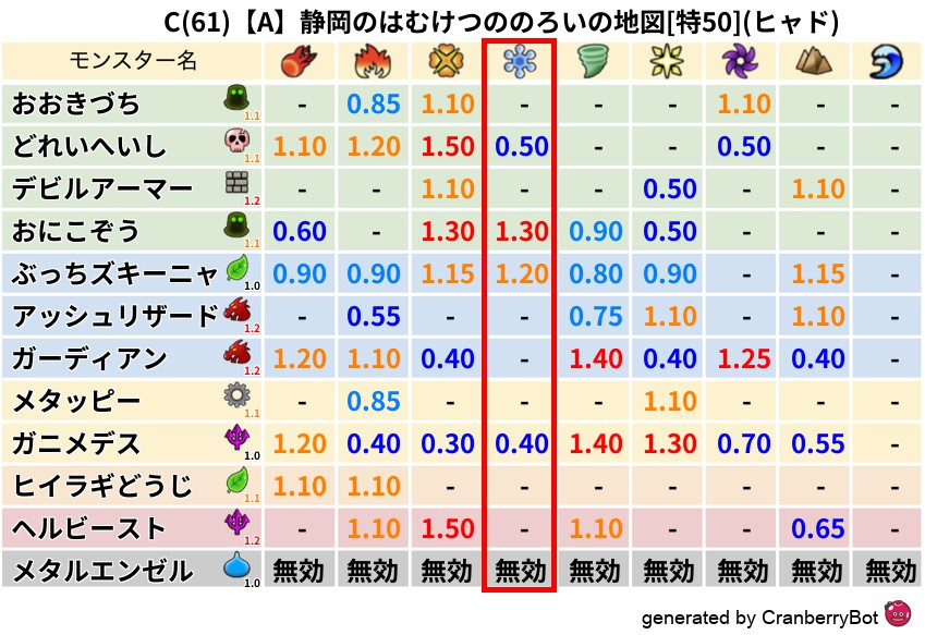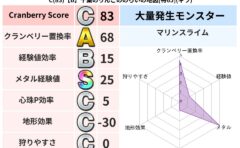 • クランベリー置換率:大量発生モンスター別の順位、最高置換率の地図は人気が高い