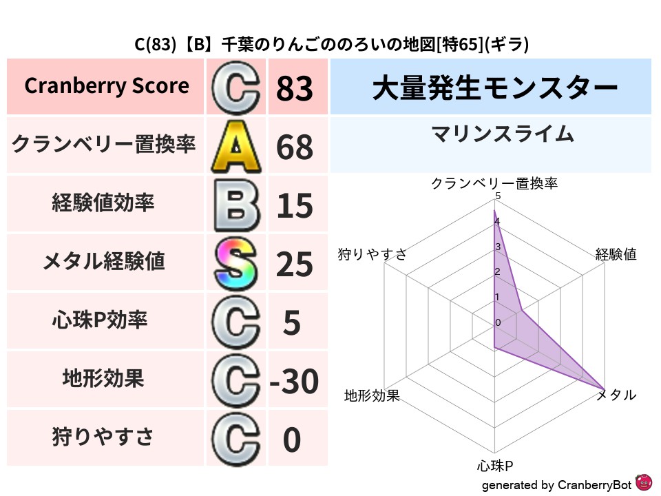 • クランベリースコア:これまで判定した地図での順位、上位100位はかなりレア✨