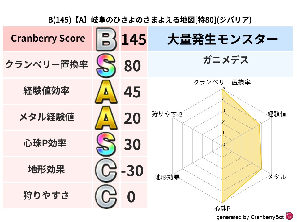 • クランベリースコア:これまで判定した地図での順位、上位100位はかなりレア✨