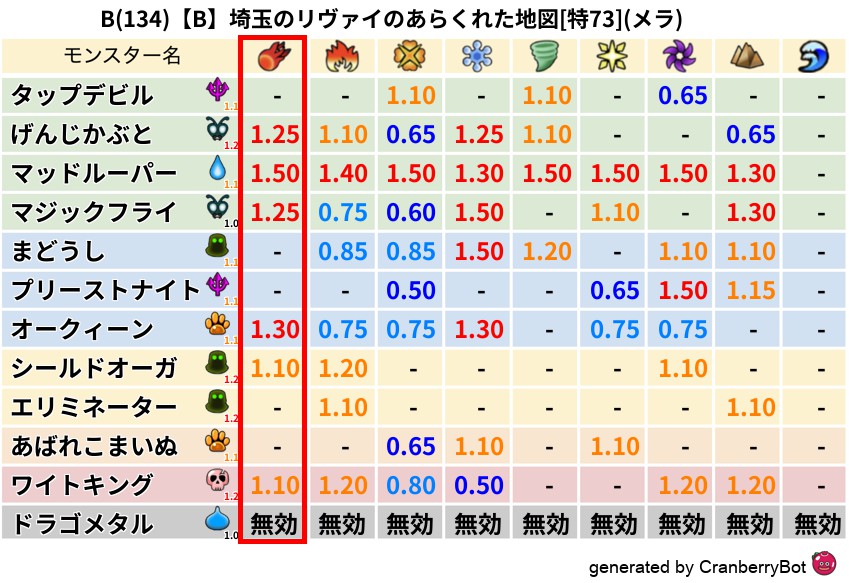 • 最高系統出現率:一番出現率の高いモンスターの系統、こころドロップ率アップの参考に!