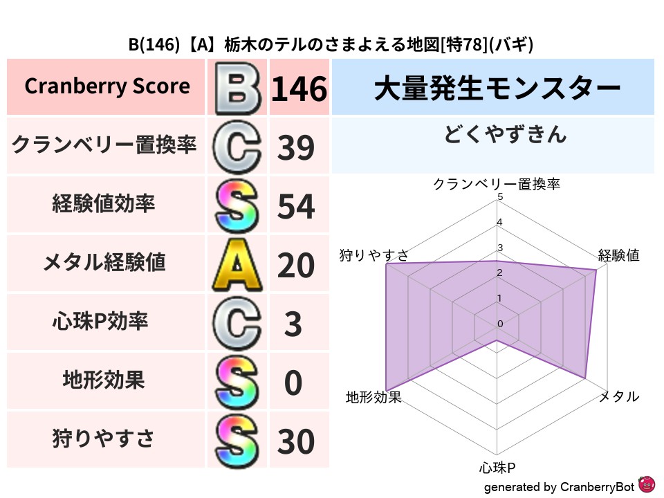 • クランベリースコア:これまで判定した地図での順位、上位100位はかなりレア✨