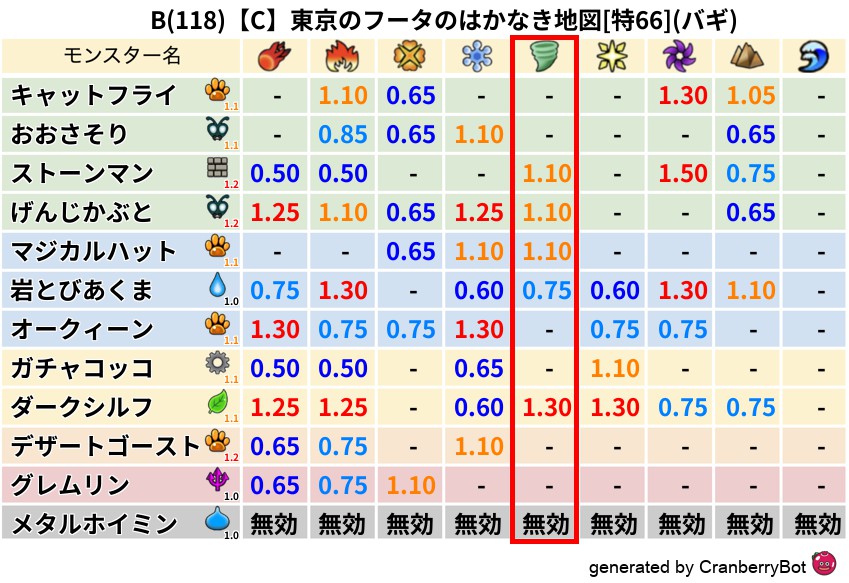 • クランベリー置換率:大量発生モンスター別の順位、最高置換率の地図は人気が高い