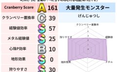 • クランベリー置換率:大量発生モンスター別の順位、最高置換率の地図は人気が高い