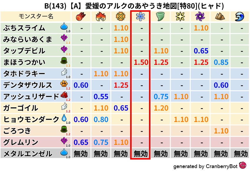 ヒャド(0%) - 超耐性・弱耐性なし