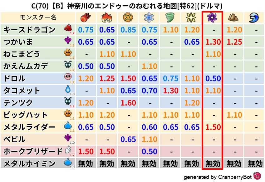 ドルマ(9%) - 超耐性・弱耐性なし