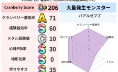 • クランベリー置換率:大量発生モンスター別の順位、最高置換率の地図は人気が高い