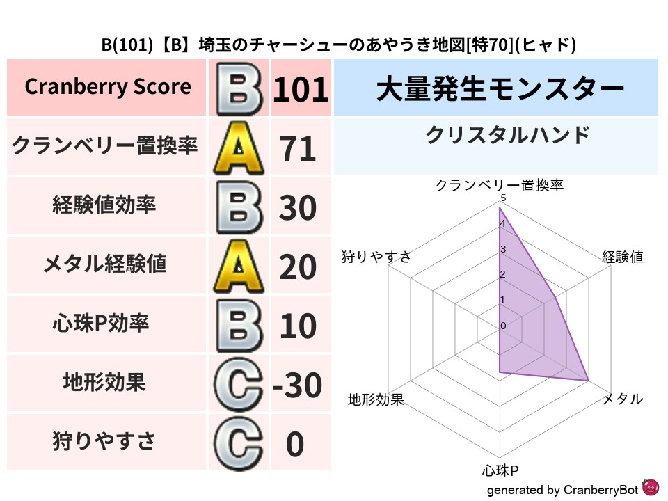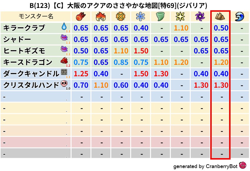 B(123)【C】大阪のアクアのささやかな地図[特69](ジバリア) 地図判定結果 2024/11/08 21:132025/10/23 11:42 地図判定結果 クリスタルハンドジバリア (まだ評価がありません)読み込み中... 🤍 登録する コメントを見る(0件)クランベリーボット判定結果の詳細 クランベリースコア123 クランベリー置換率61% 大量発生モンスタークリスタルハンド 超耐性ジバリア(92%) こころ道 完全一致モンスター シャドーニンジャ(波道Lv30) ヒートギズモ守り人(ささえ道Lv5) キースドラゴン大魔道士(理力道Lv5) ダークキャンドルゴッドハンド(守護道Lv10) クリスタルハンドゴッドハンド(守護道Lv10)大魔道士(魔力道Lv10) この地図を探す・受け取る 「大阪のアクアのささやかな地図」をみんドラで探す