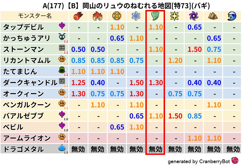 • 最高系統出現率:一番出現率の高いモンスターの系統、こころドロップ率アップの参考に!