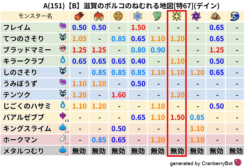 • クランベリー置換率:大量発生モンスター別の順位、最高置換率の地図は人気が高い