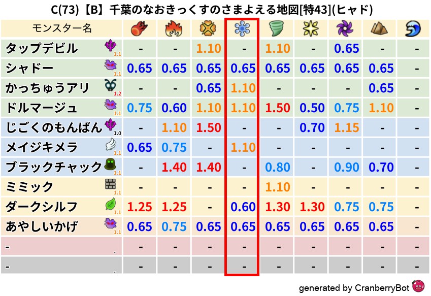 • クランベリー置換率:大量発生モンスター別の順位、最高置換率の地図は人気が高い