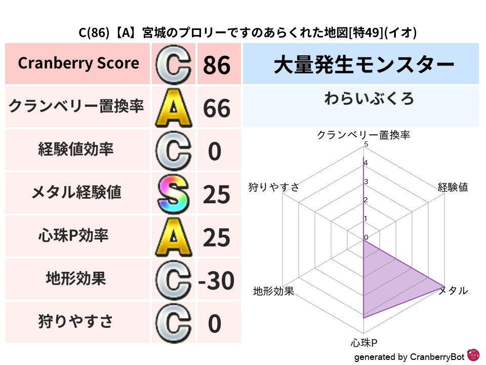 - クランベリースコア:99