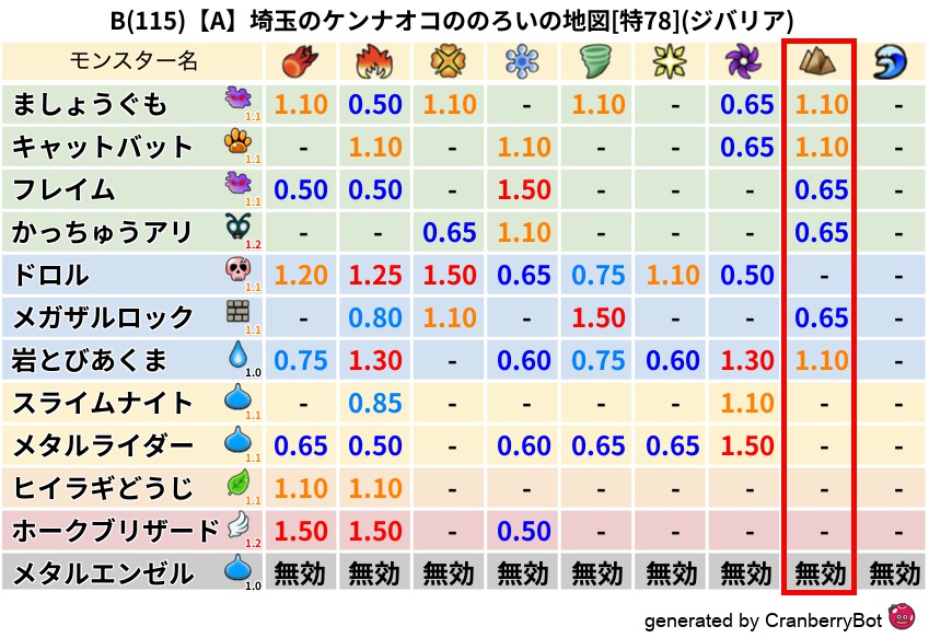 • 最高系統出現率:一番出現率の高いモンスターの系統、こころドロップ率アップの参考に!
