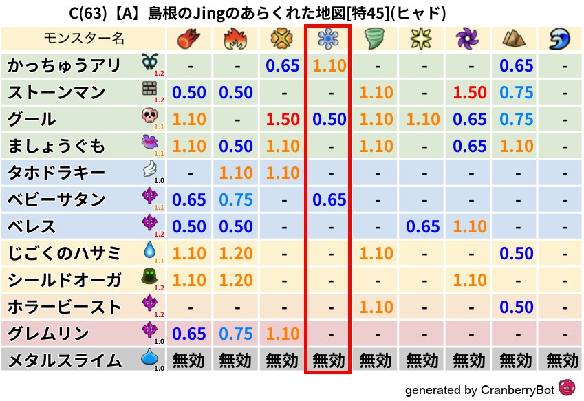 • クランベリー置換率:大量発生モンスター別の順位、最高置換率の地図は人気が高い
