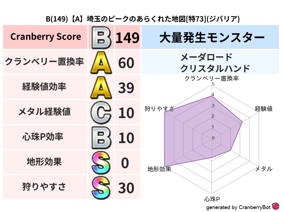 • クランベリースコア:これまで判定した地図での順位、上位100位はかなりレア✨