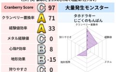 • クランベリー置換率:大量発生モンスター別の順位、最高置換率の地図は人気が高い