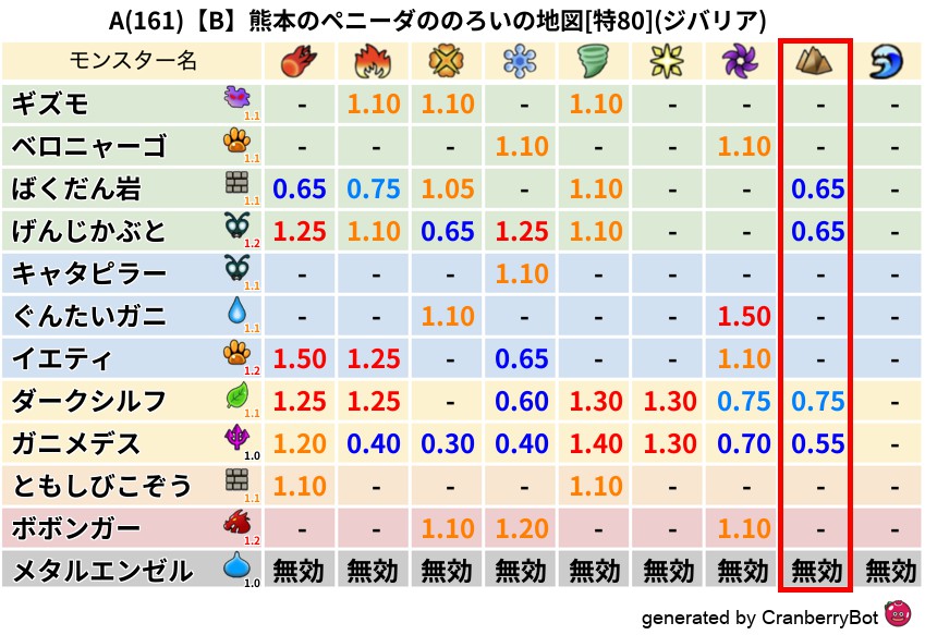 ジバリア(89%) - 超耐性・弱耐性なし