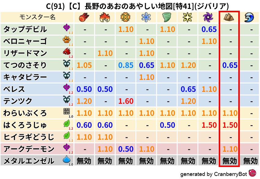 • クランベリー置換率:大量発生モンスター別の順位、最高置換率の地図は人気が高い